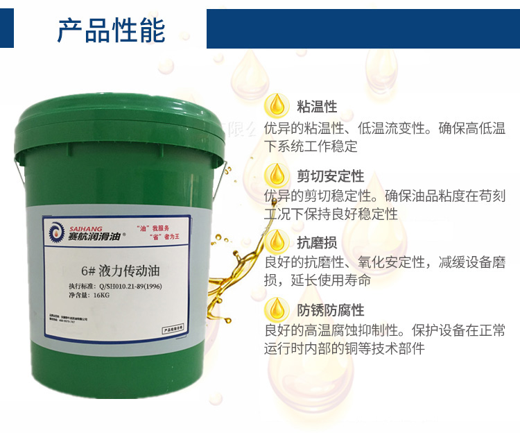 賽航液力傳動油以大慶深度精制異構(gòu)脫蠟基礎(chǔ)油,加入降凝、抗氧、抗磨及抗泡等各種添加劑調(diào)制而成。按100℃運動粘度劃分為6#和8#兩個牌號。