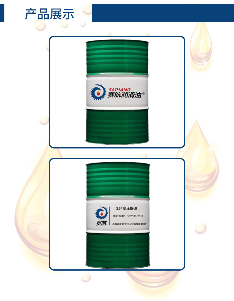 25#變壓器油是適度精制的低粘度、低傾點環(huán)烷基(含少部分中間基)基礎(chǔ)油加入優(yōu)質(zhì)抗氧復合添加劑調(diào)制而成,具有傳熱速度氧化安定性好等特點。